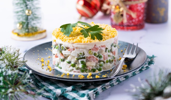 Начнем с короля любого новогоднего стола. Оказывается, этот салат — не просто дань традиции, а настоящий денежный магнит. По мнению астрологов, каждая ложка оливье, съеденная в новогоднюю ночь, работает на вашу финансовую стабильность в 2026 году. Так что не экономьте на горошке и колбасе — это инвестиция!